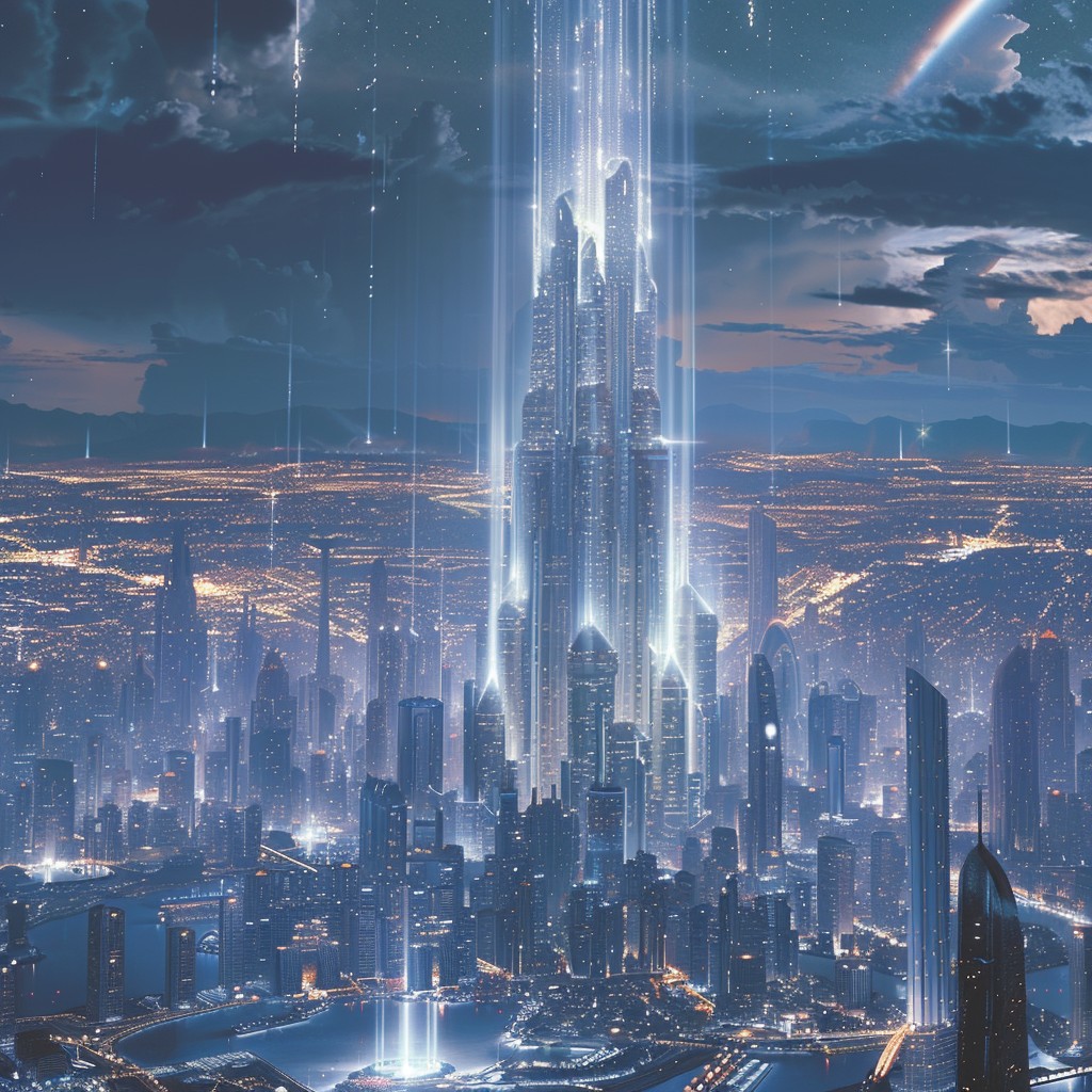 All around us lights were coming on in the living complexes soaring in tapering silvery spires above deserted walkways and abruptly dead-ending cul de sacs. Like on the lurid covers of those sci-fi paperbacks I used to buy for seventy-five cents at Rexall when I was a kid riding my red Schwinn to Grand Haven seems like a million years ago.
