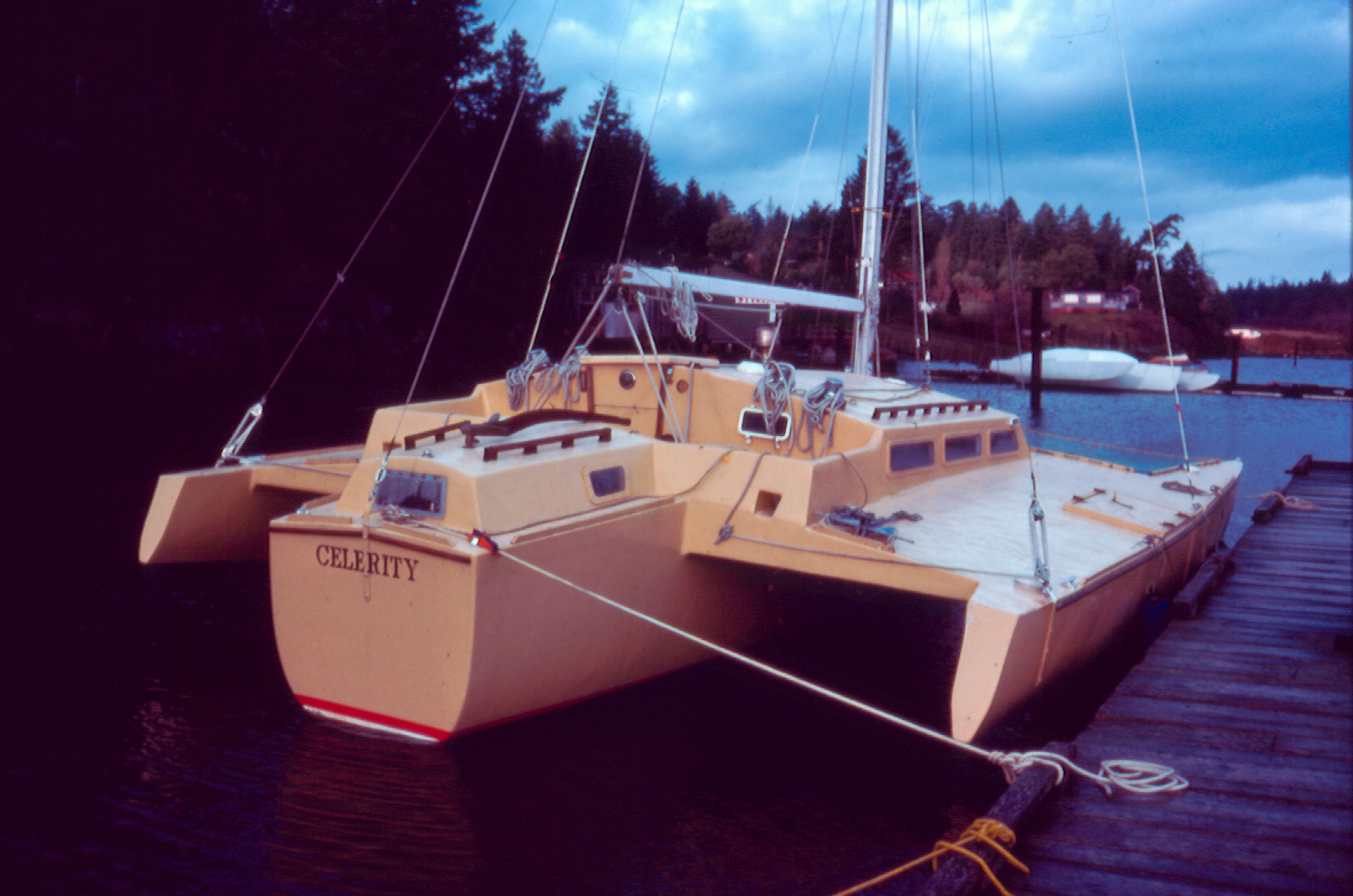 Bare-bones, engineless Celerity soon after launching at Silva Bay, Gabriola Island -Will "Randy" Thomas photo