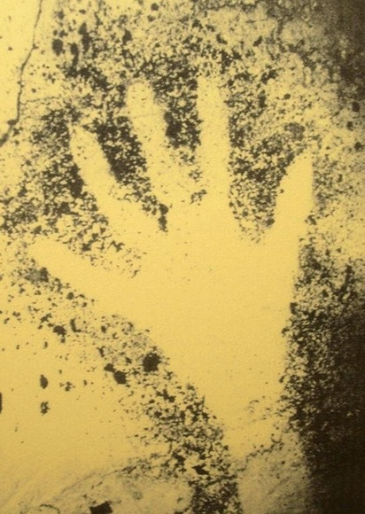 Blown-pigment stencil of a human hand from Cosquer Cave, 27,000 BP -National Museum of Archeology, France